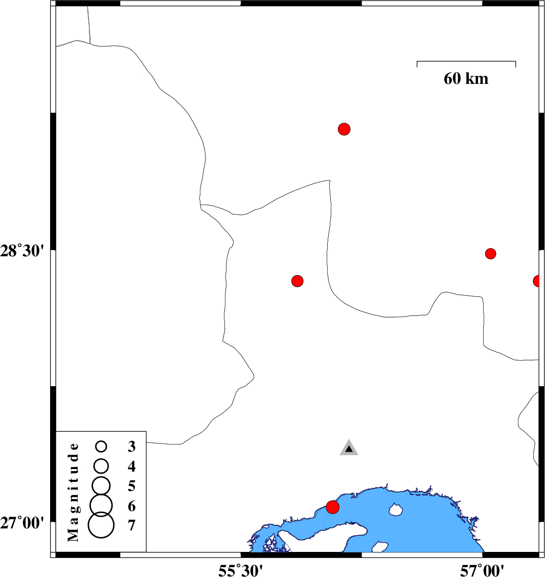 | 2012/10/06 | 03:01:13.8 | 06:31:13.8 | 28.33 | 55.85 | 6 | ML:3.2 | Hormozgan Province, 6 km Hajiabad | ||