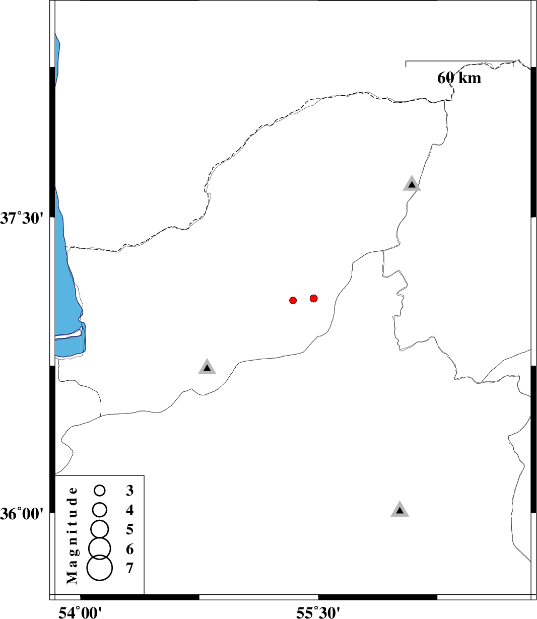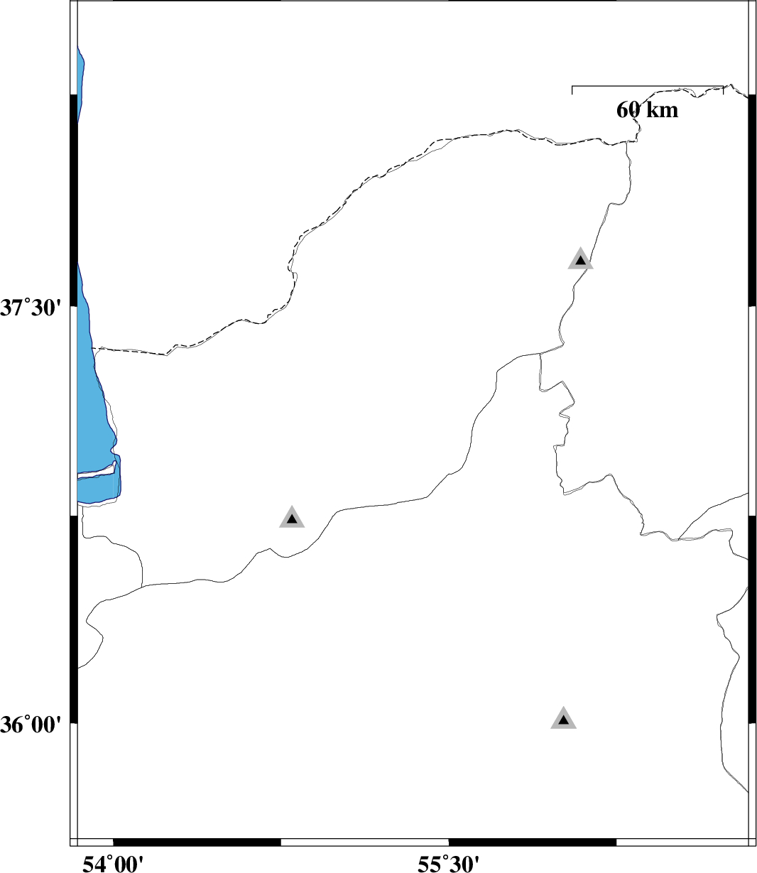 | 2012/10/13 | 12:42:05.3 | 16:12:05.3 | 37.08 | 55.34 | 43 | ML:2 | Golestan Province, 15 km East of Azadshahr | ||