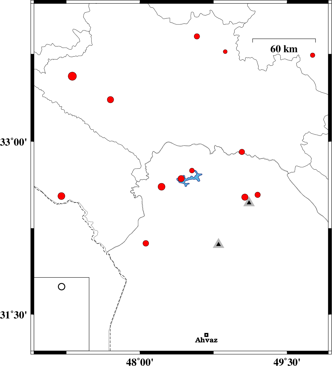 2012/09/28 | 10:45:51.9 | 14:15:51.9 | 32.52 | 49.07 | 14 | ML:3 | Khoozestan Province, 15 km North of Lali | ||