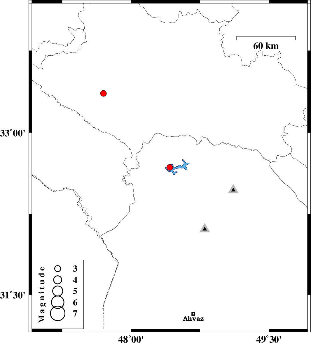 | 2012/10/15 | 02:41:31.3 | 06:11:31.3 | 32.68 | 48.42 | 14 | ML:3 | Khoozestan Province, 25 km North of Andimeshk | ||