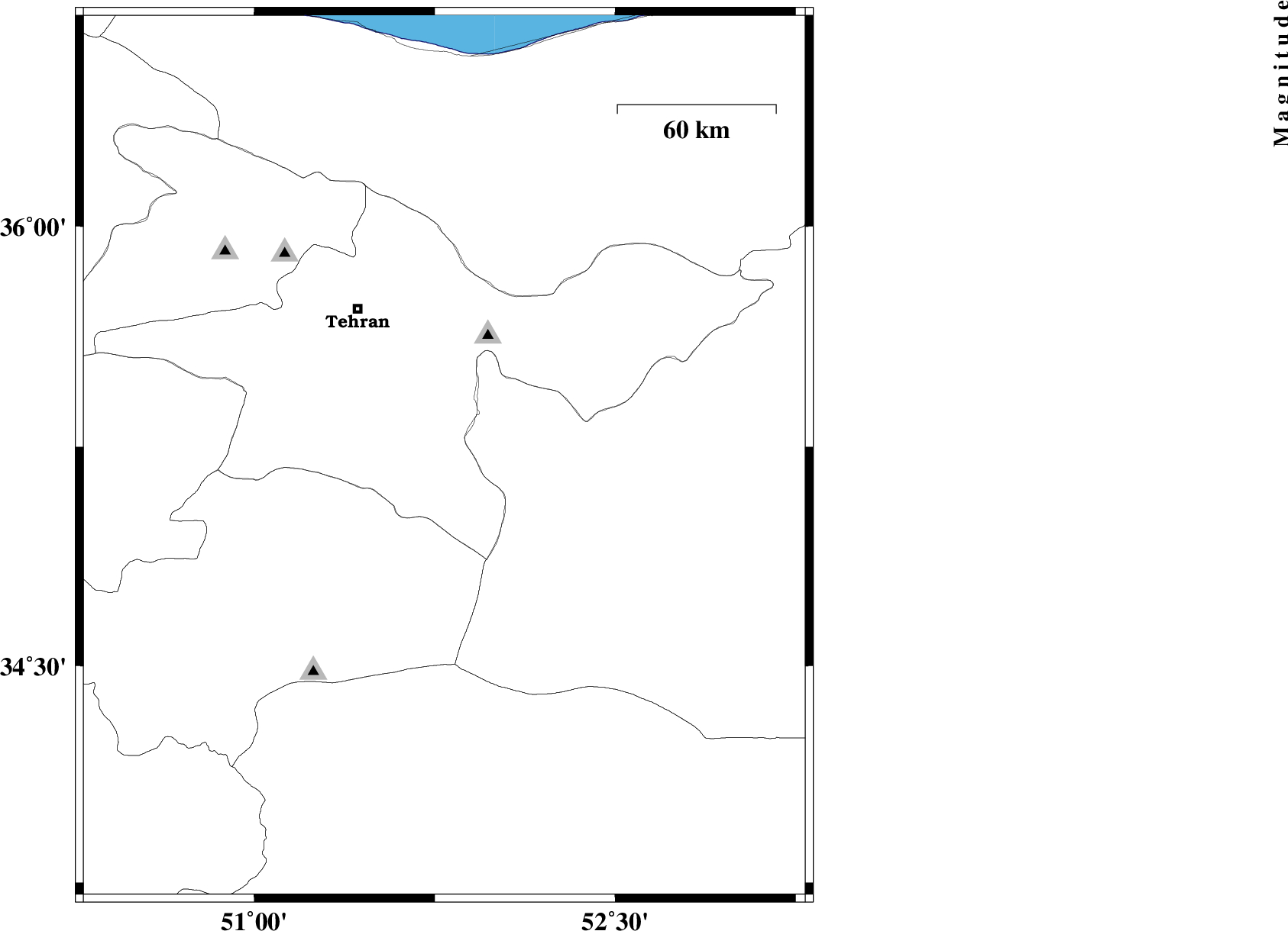 | 2012/10/15 | 03:54:45.8 | 07:24:45.8 | 35.21 | 51.79 | 26 | ML:1.8 | Tehran Province, 17 km South-East of Varamin | ||