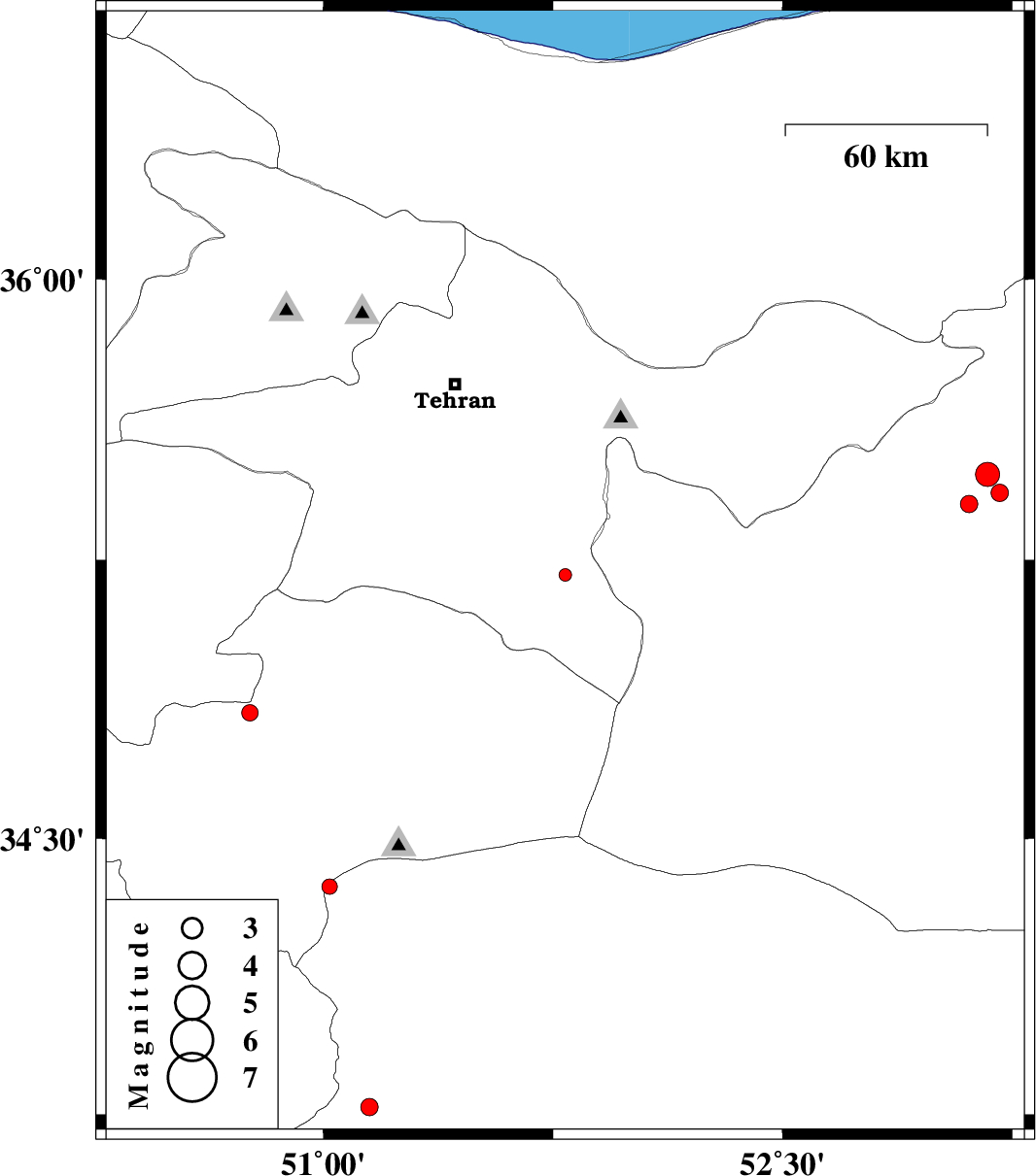 | 2012/10/08 | 03:42:05.0 | 07:12:05.0 | 35.48 | 53.17 | 14 | ML:3.5 | Semnan Province, 23 km West of Semnan | ||