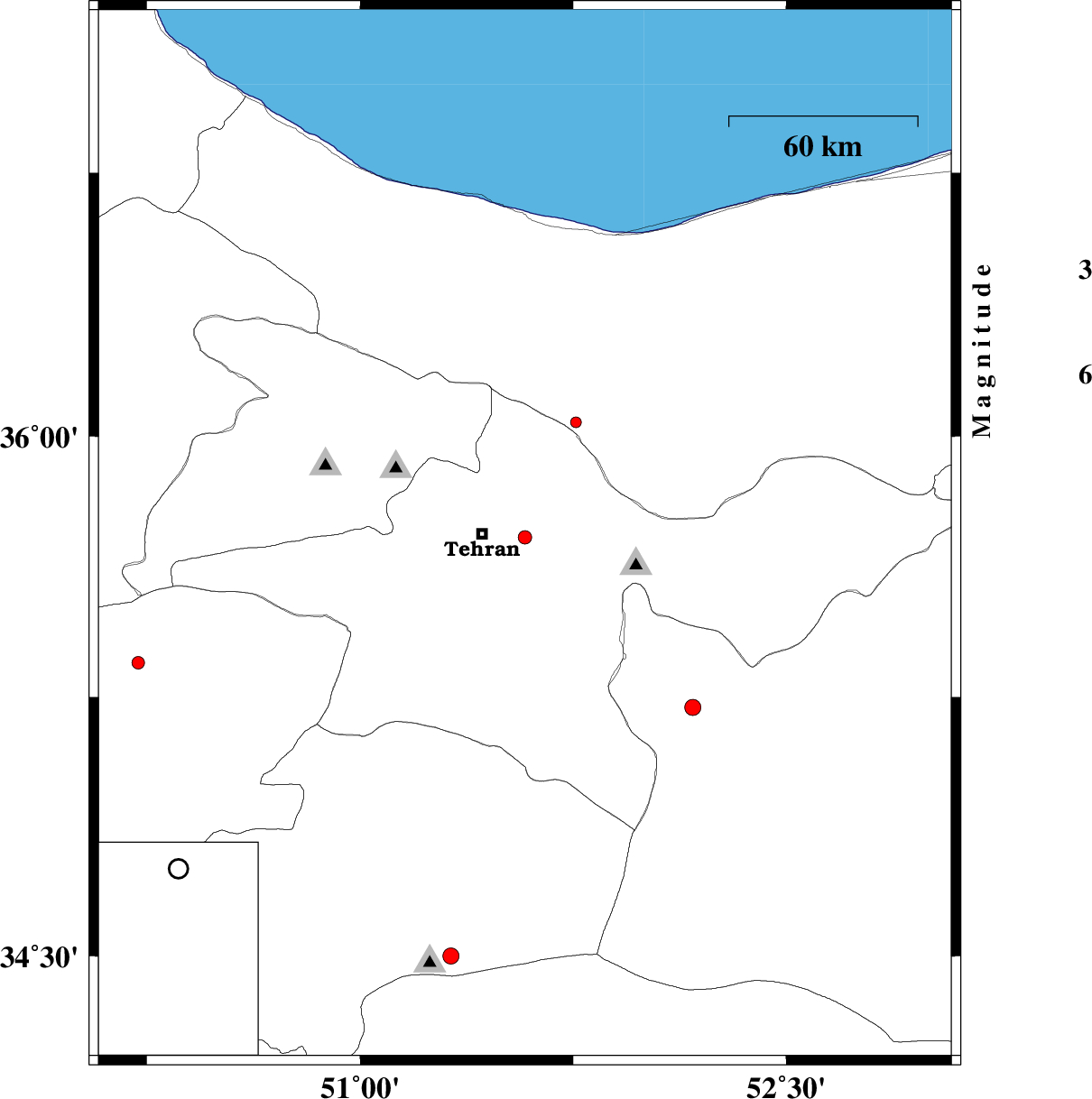 2012/10/22 | 19:45:45.8 | 23:15:45.8 | 36.04 | 51.76 | 15 | ML:1.7 | Mazandaran Province, 39 km North-East of Tajrish | ||