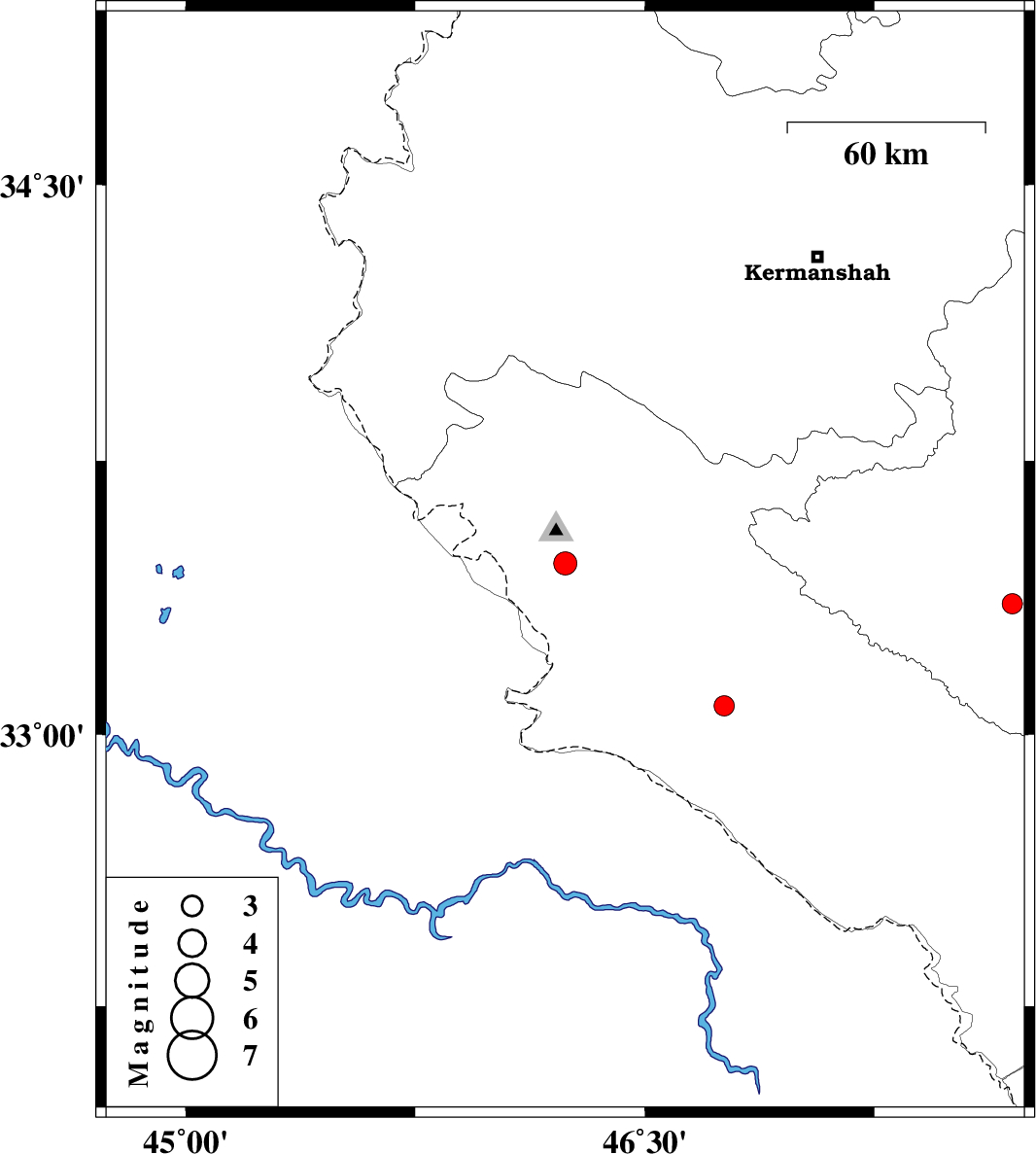 | 2012/10/23 | 11:56:40.1 | 15:26:40.1 | 33.47 | 46.24 | 14 | ML:3.4 | Ilam Province, 26 km South-West of Ilam | ||