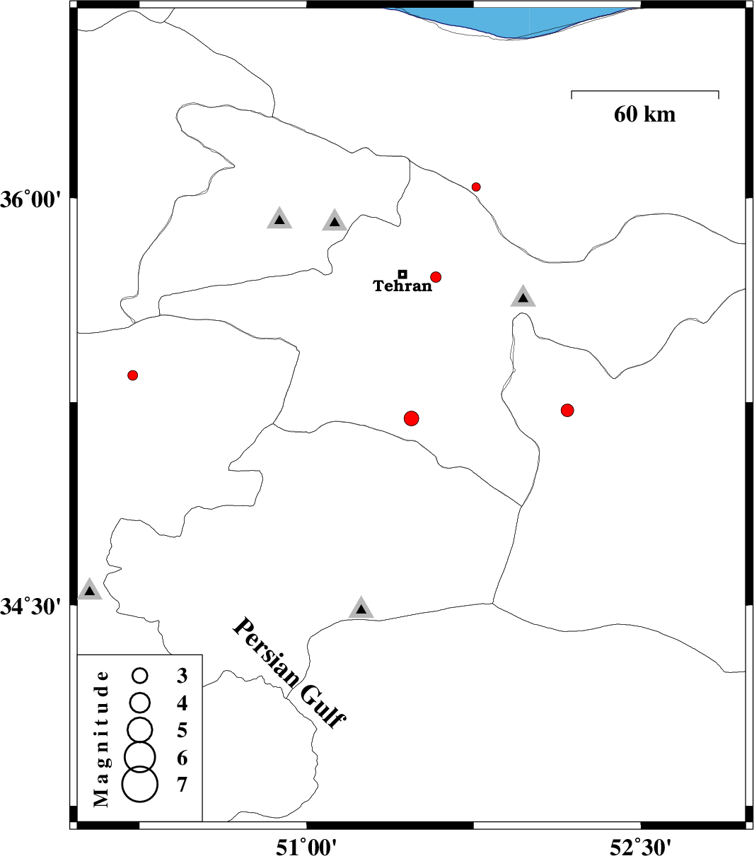 | 2012/10/24 | 15:32:02.3 | 19:02:02.3 | 35.19 | 51.47 | 14 | ML:2.9 | Tehran Province, 23 km South-West of Varamin | ||