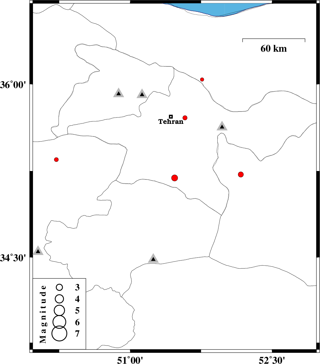 | 2012/10/23 | 09:25:22.7 | 12:55:22.7 | 35.71 | 51.58 | 26 | ML:2.1 | Tehran Province, 17 km East of Tehran | ||