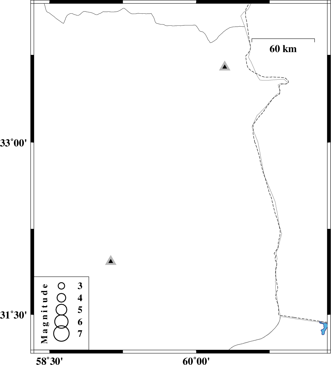 | 2012/10/30 | 19:18:29.7 | 22:48:29.7 | 32.69 | 59.84 | 42 | ML:2.9 | Khorasan(south) Province, 9 km Sarbisheh |