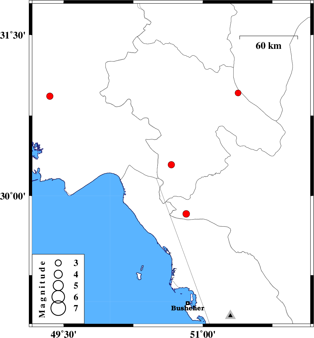 | 2012/10/28 | 14:37:42.9 | 18:07:42.9 | 29.83 | 50.82 | 18 | ML:3.4 | Fars Province, 58 km South of Dogonbadan | ||