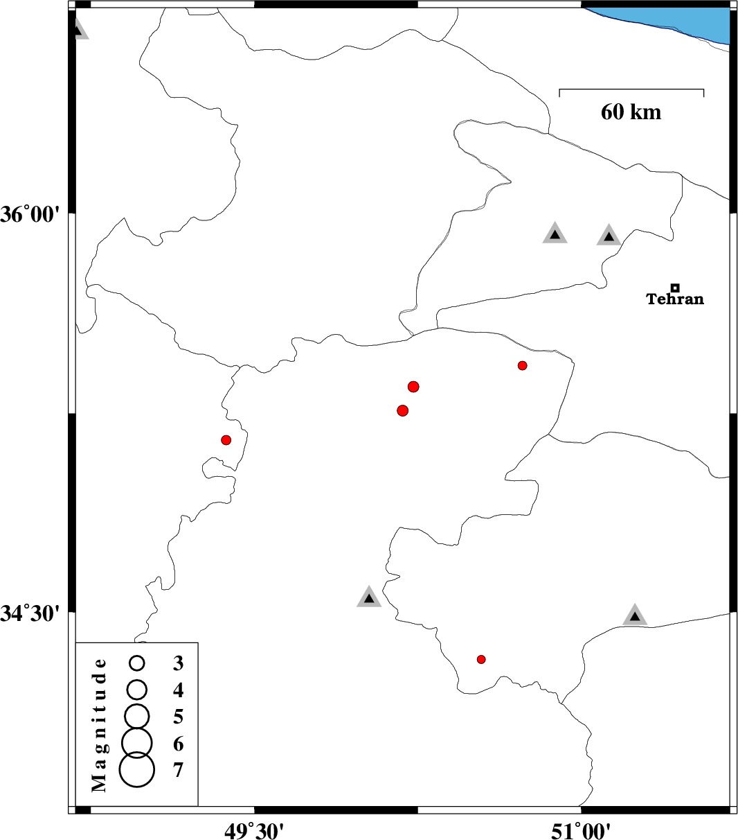 | 2012/10/31 | 09:21:58.2 | 12:51:58.2 | 35.15 | 49.37 | 15 | ML:2 | Hamedan Province, 40 km South-East of Razan |