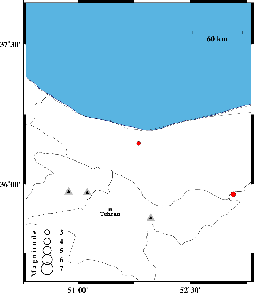 | 2012/11/01 | 19:31:01.7 | 23:01:01.7 | 35.89 | 53.07 | 15 | ML:3.1 | Semnan Province, 25 km South of Pol-E-Sefid | ||