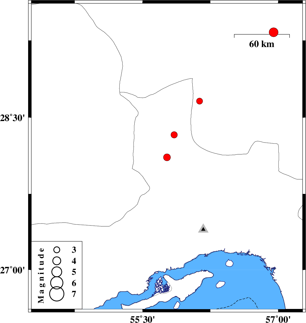 | 2012/10/06 | 03:01:13.8 | 06:31:13.8 | 28.33 | 55.85 | 6 | ML:3.2 | Hormozgan Province, 6 km Hajiabad |