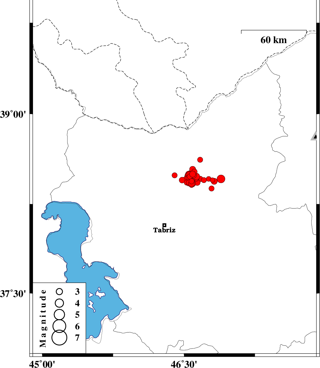 2012/11/07 06:26:30.6 09:56:30.6 38.4846.5714 Ms:5.6 Azarbaijan Sharghi Province, 45 km West of Ahar