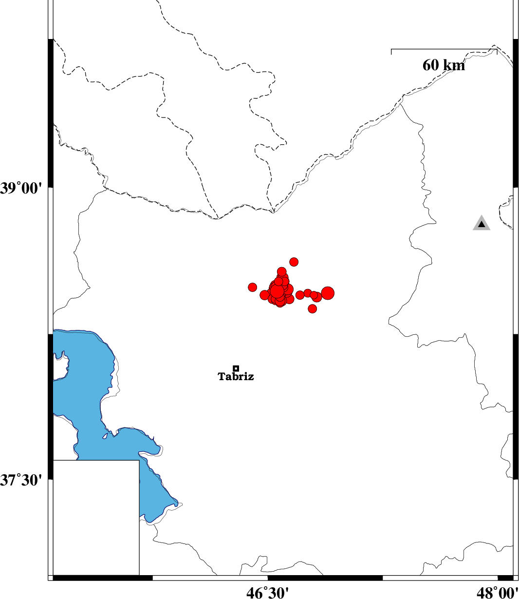 2012/11/07 | 09:00:03.8 | 12:30:03.8 | 38.42 | 46.55 | 14 | ML:2.3 | Azarbaijan Sharghi Province, 47 km West of Ahar | ||