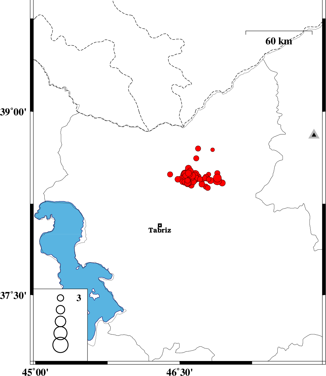 2012/11/07 07:52:11.6 11:22:11.6 38.5346.618 ML:2.6 Azarbaijan Sharghi Province, 43 km West of Ahar