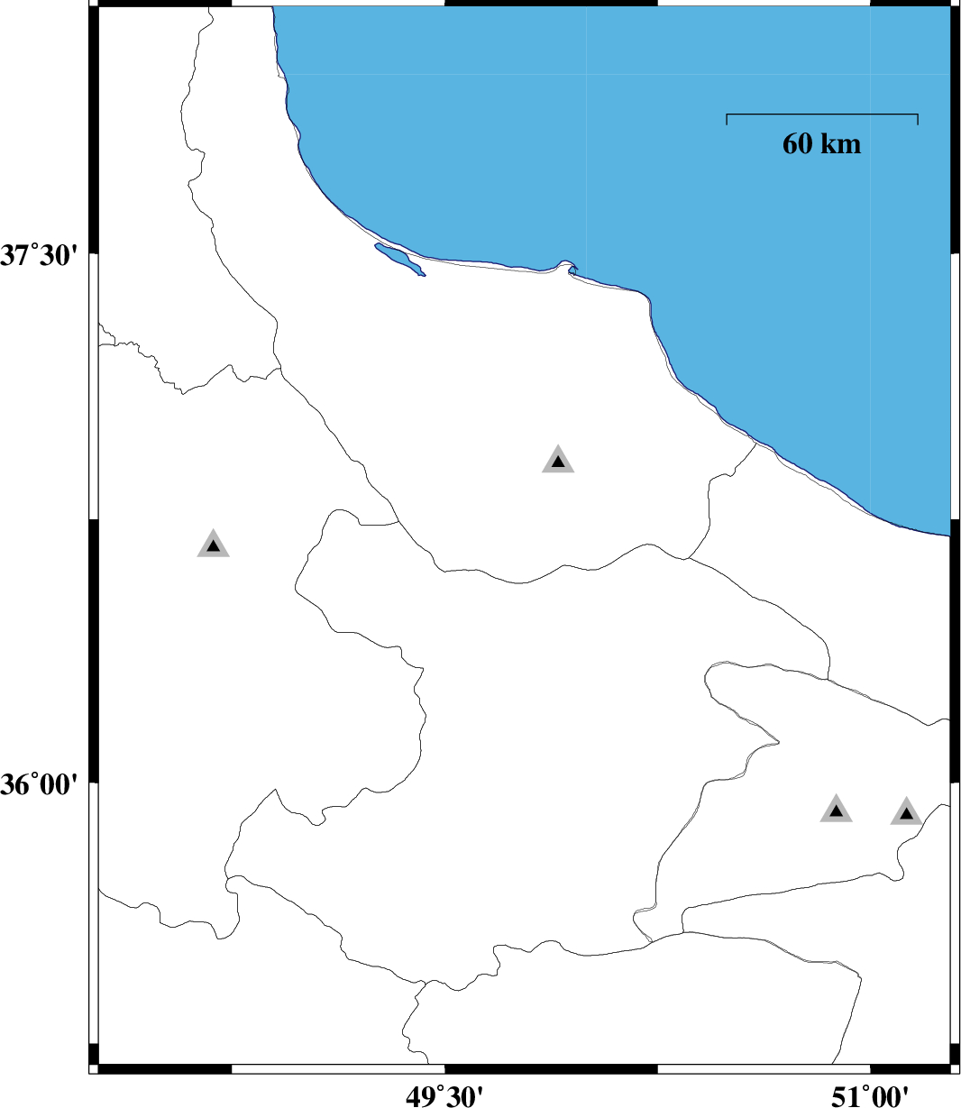 | 2012/10/27 | 10:59:46.9 | 14:29:46.9 | 36.96 | 49.39 | 15 | ML:3.2 | Gilan Province, 16 km North of Rudbar | ||
