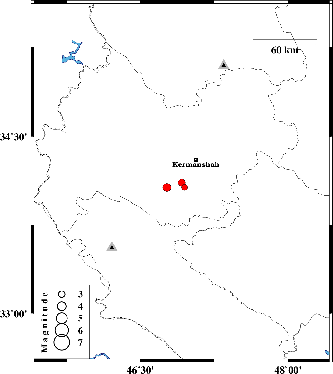 | 2012/11/19 | 14:11:24.8 | 17:41:24.8 | 34.07 | 46.77 | 37 | ML:3.7 | Kermanshah Province, 16 km East of Eslam Abad-E-Gharb |