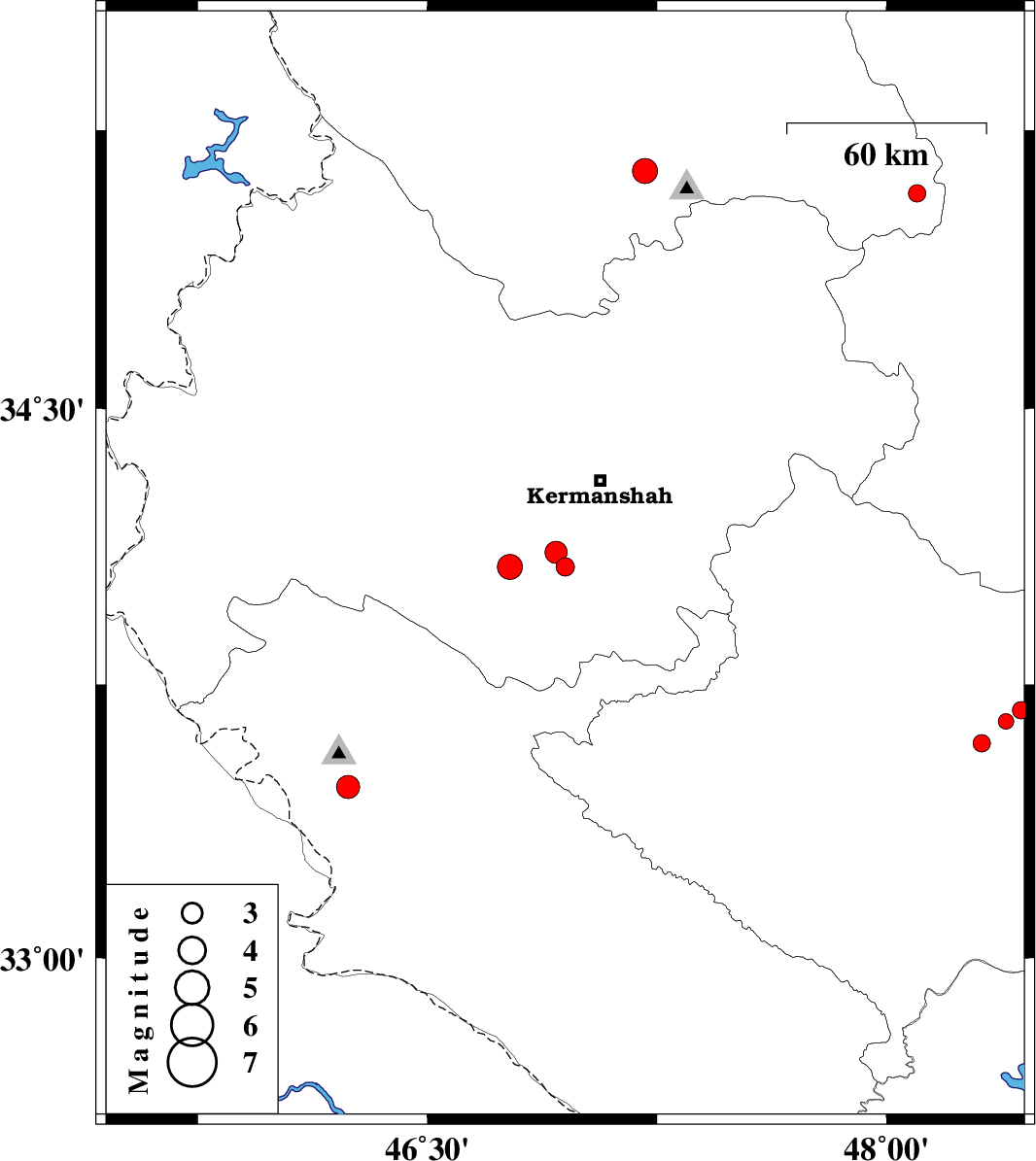 | 2012/11/19 | 14:11:24.8 | 17:41:24.8 | 34.07 | 46.77 | 37 | ML:3.7 | Kermanshah Province, 16 km East of Eslam Abad-E-Gharb | ||