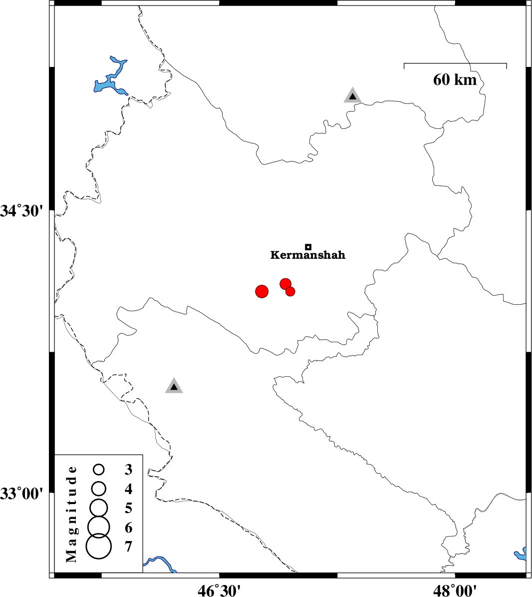 | 2012/11/19 | 14:11:24.8 | 17:41:24.8 | 34.07 | 46.77 | 37 | ML:3.7 | Kermanshah Province, 16 km East of Eslam Abad-E-Gharb |