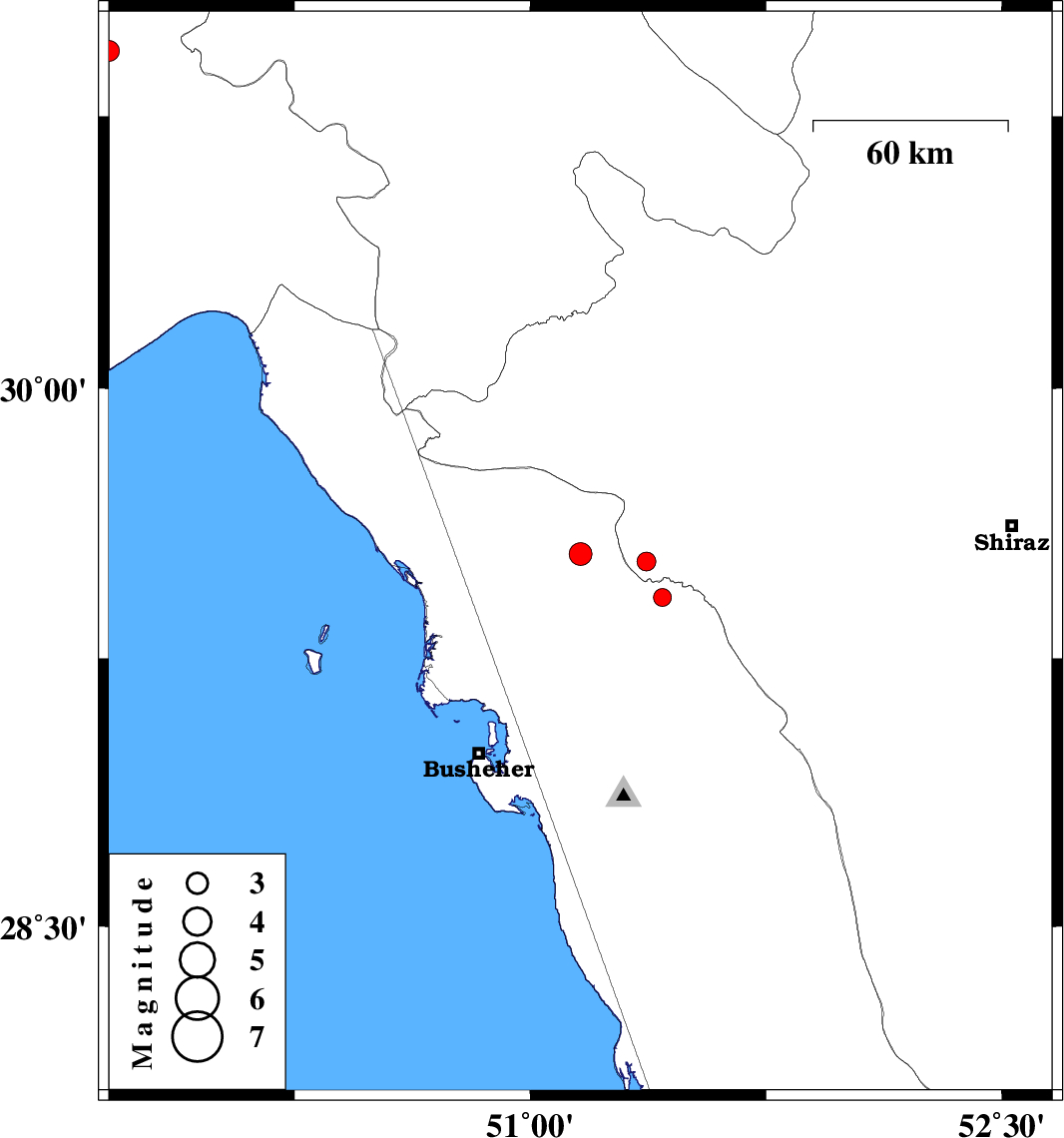| 2012/11/24 | 16:45:15.5 | 20:15:15.5 | 29.42 | 51.42 | 15 | ML:2.5 | Bushehr Province, 27 km North-East of Borazjan | ||