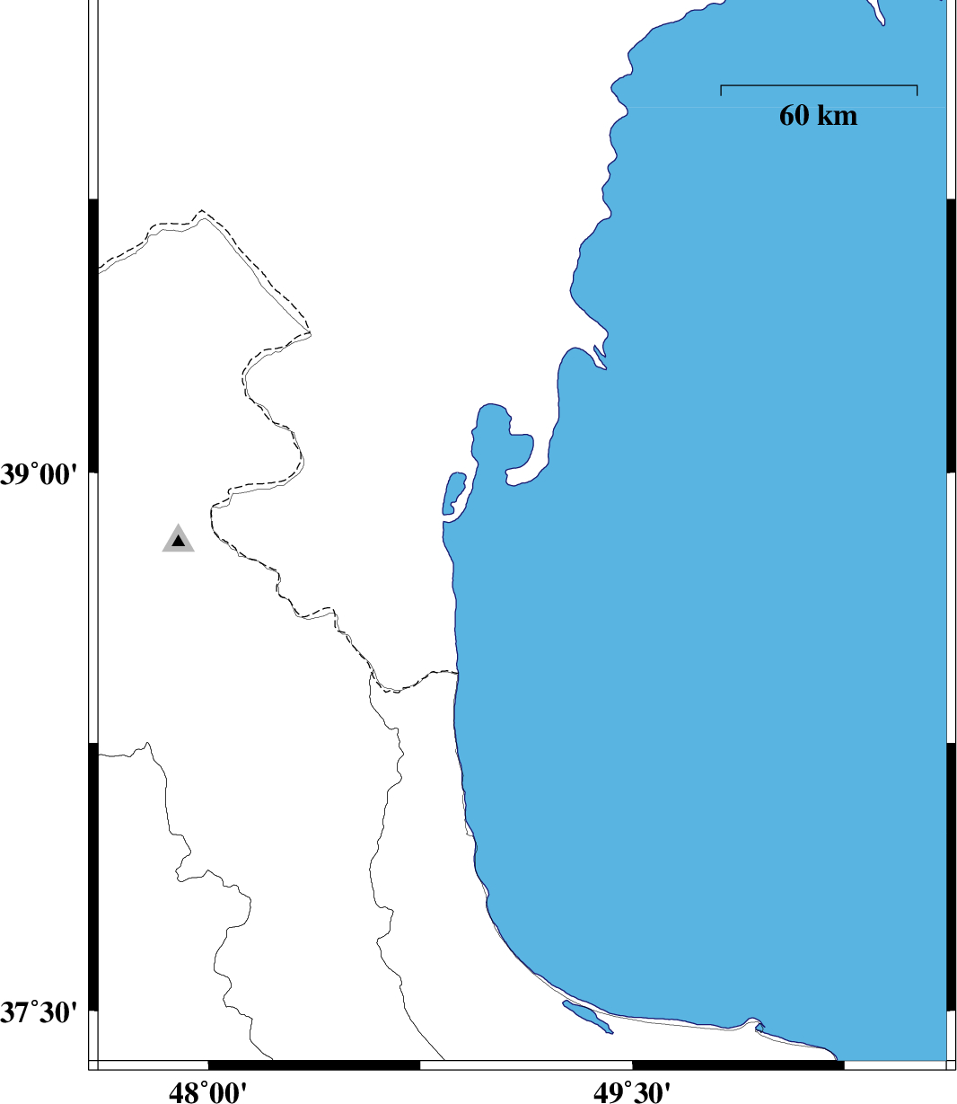 | 2012/11/26 | 21:13:43.0 | 00:43:43.0 | 38.86 | 49.11 | 27 | ML:3.8 | Caspian Sea, 54 km North-East of Astara | ||
