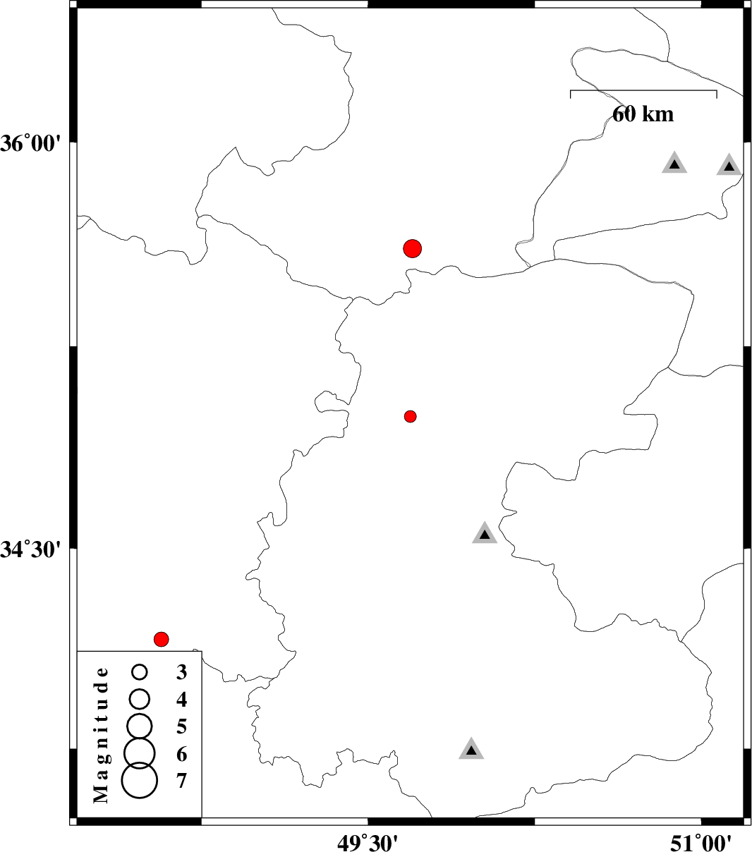 | 2012/11/27 | 13:22:58.3 | 16:52:58.3 | 34.99 | 49.69 | 17 | ML:2.4 | Markazi Province, 45 km North-West of Tafresh | ||