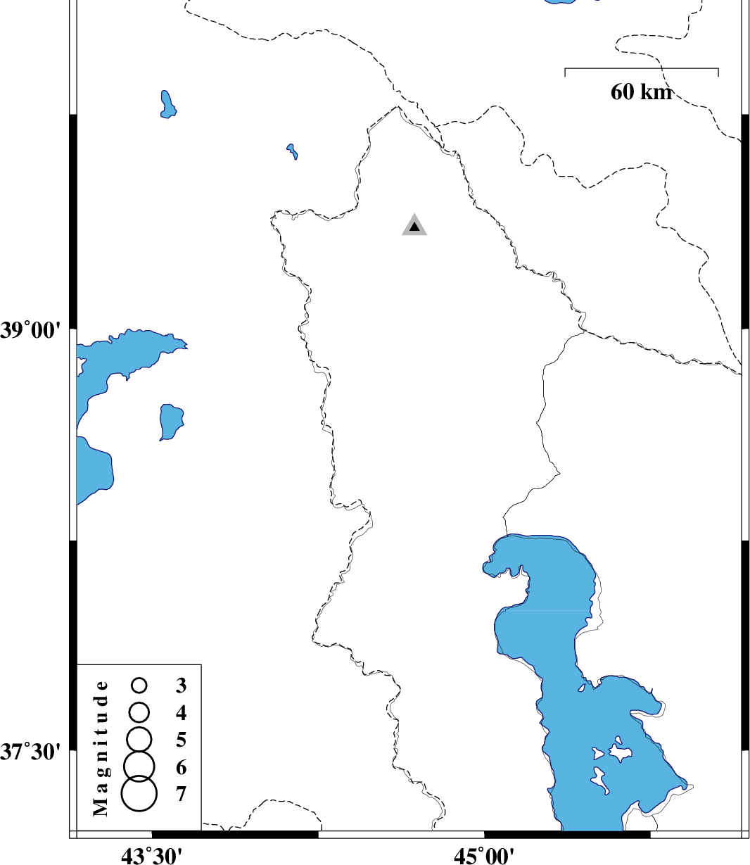 | 2012/11/28 | 00:34:44.3 | 04:04:44.3 | 38.71 | 44.66 | 14 | ML:3.2 | Azarbaijan Gharbi Province, 30 km North-West of Khoy |