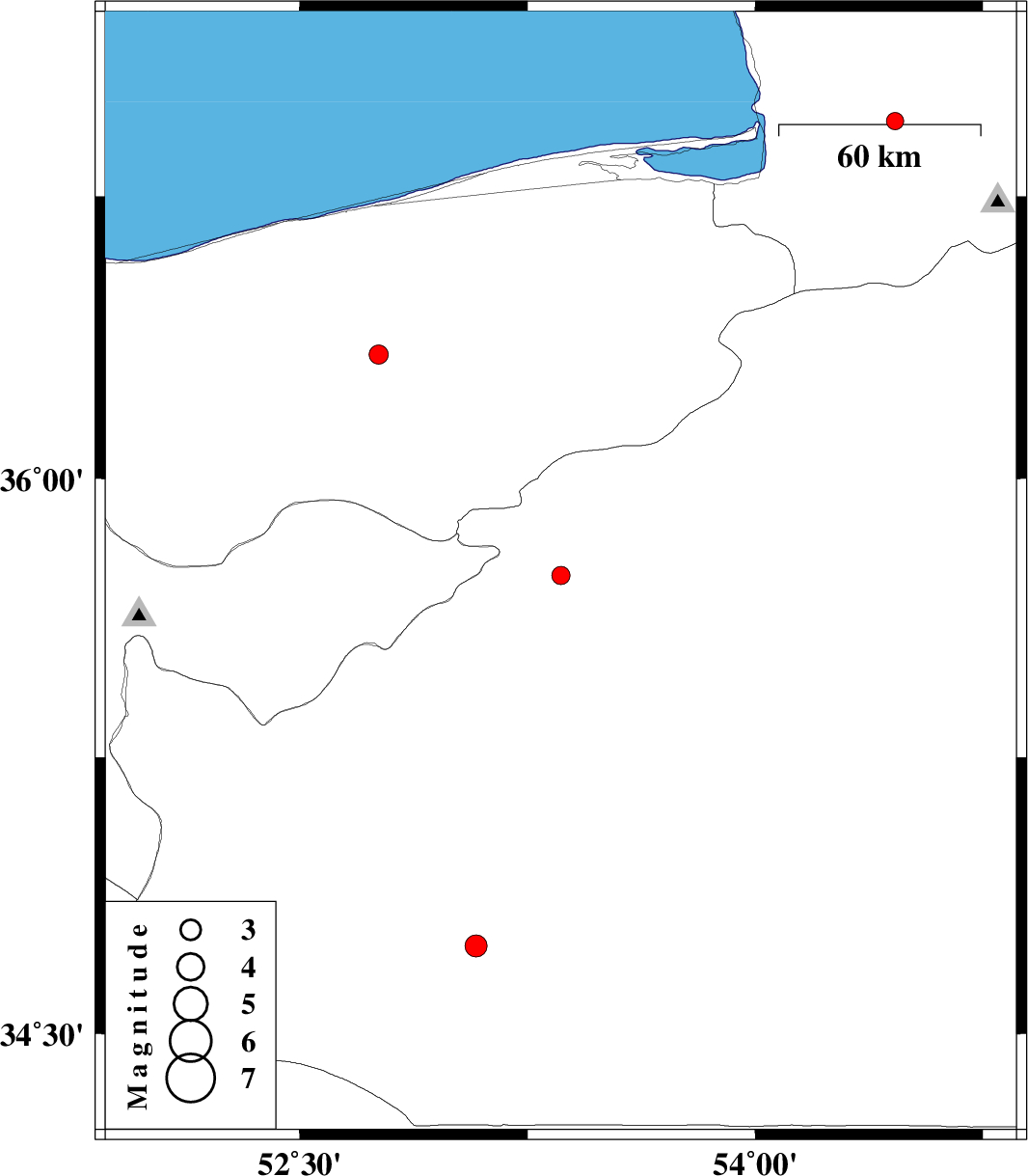 | 2012/11/29 | 20:26:41.3 | 23:56:41.3 | 35.74 | 53.36 | 15 | ML:2.7 | Semnan Province, 19 km North of Semnan | ||