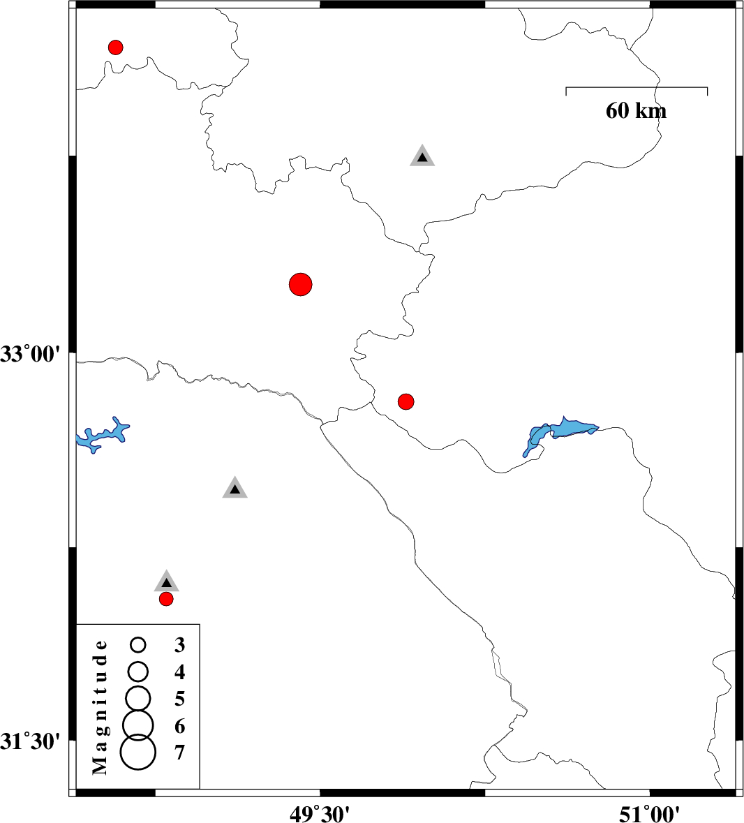 | 2012/12/03 | 15:02:10.6 | 18:32:10.6 | 32.81 | 49.89 | 14 | ML:3.2 | Esfahan Province, 25 km South-West of Fereydunshahr | ||
