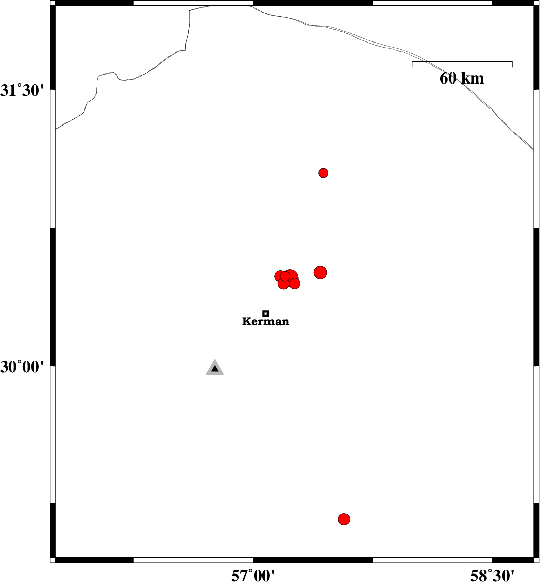 | 2012/12/03 | 13:44:27.8 | 17:14:27.8 | 30.45 | 57.19 | 14 | ML:3.3 | Kerman Province, 21 km North-East of Kerman | ||