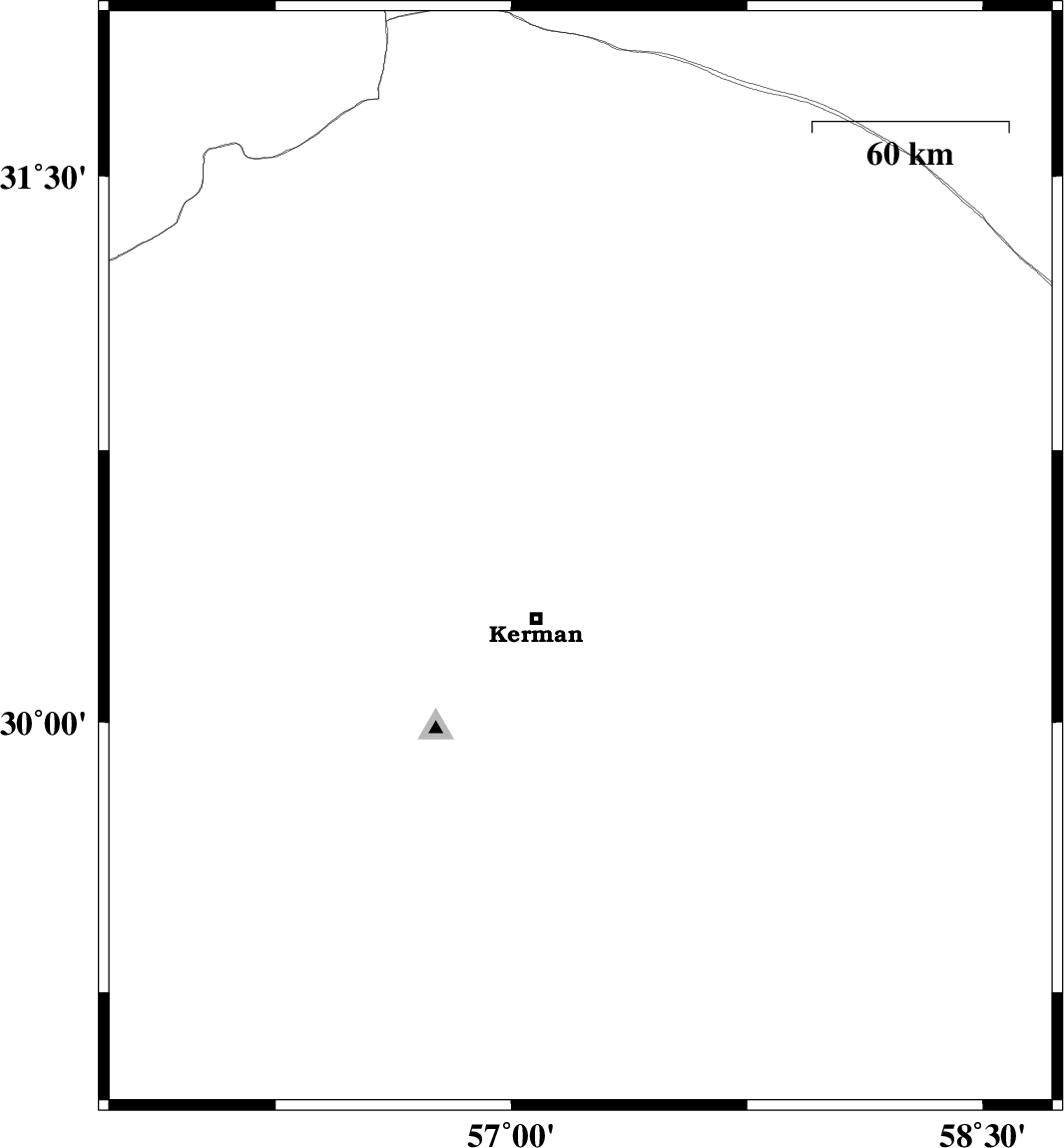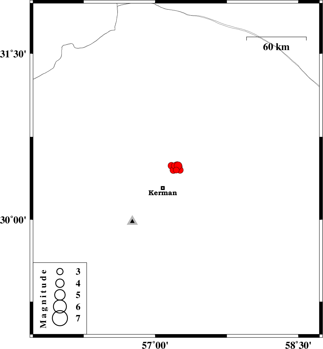 | 2012/12/04 | 00:21:42.7 | 03:51:42.7 | 30.49 | 57.24 | 14 | ML:3.6 | Kerman Province, 27 km North-East of Kerman | ||