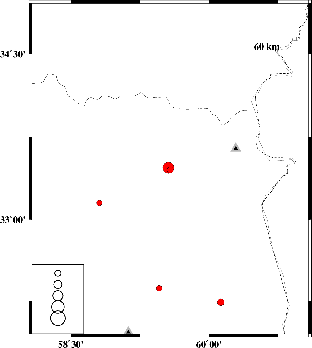 2012/11/17 14:33:38.3 18:03:38.3 32.3759.4614 ML:2.8 Khorasan(south) Province, 42 km South-West of Sarbisheh