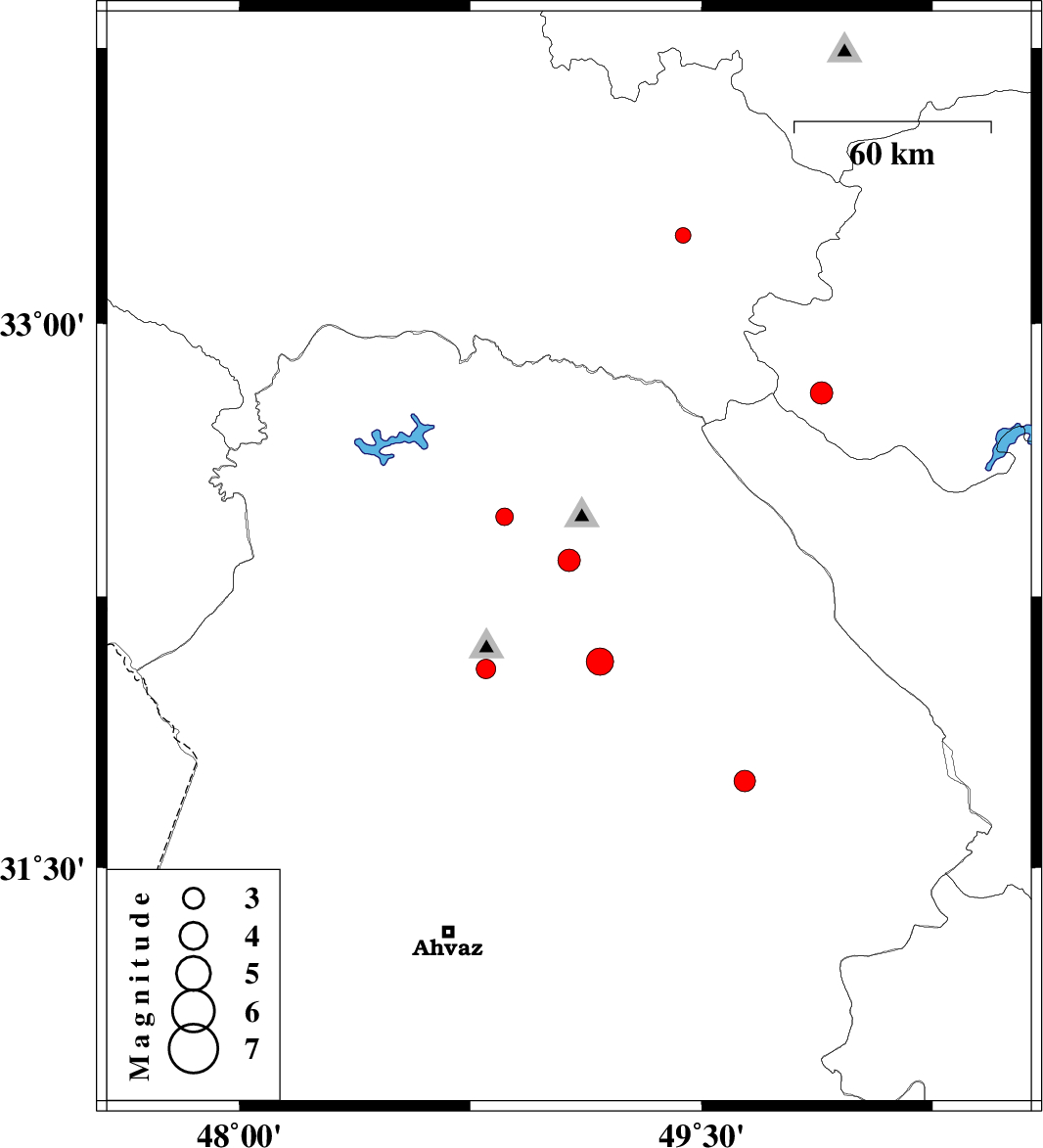 | 2012/12/05 | 22:32:15.3 | 02:02:15.3 | 32.47 | 48.86 | 14 | ML:2.5 | Khoozestan Province, 25 km West of Lali | ||