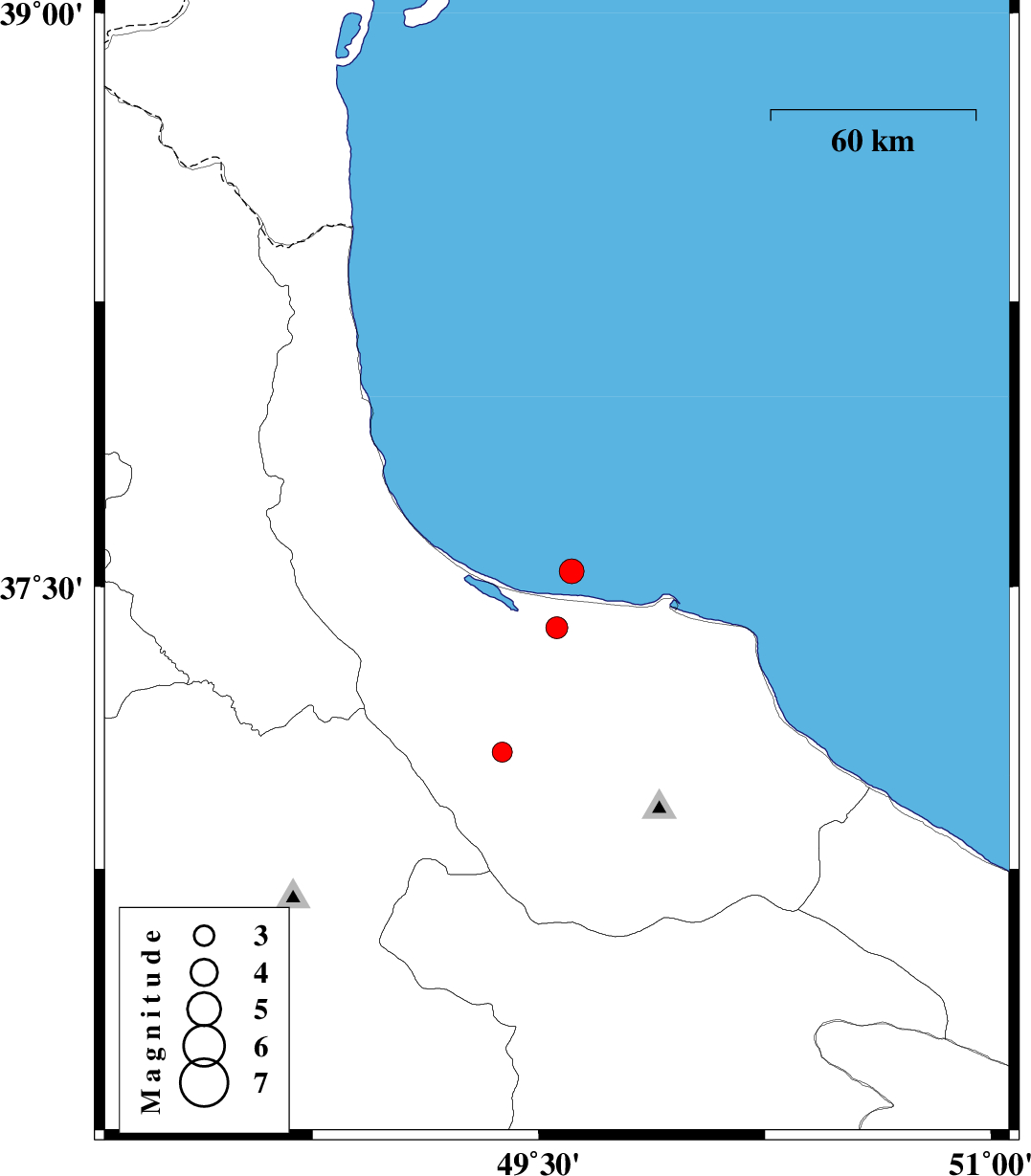 | 2012/12/01 | 12:23:28.6 | 15:53:28.6 | 37.07 | 49.33 | 14 | ML:3 | Gilan Province, 18 km South of Fuman |