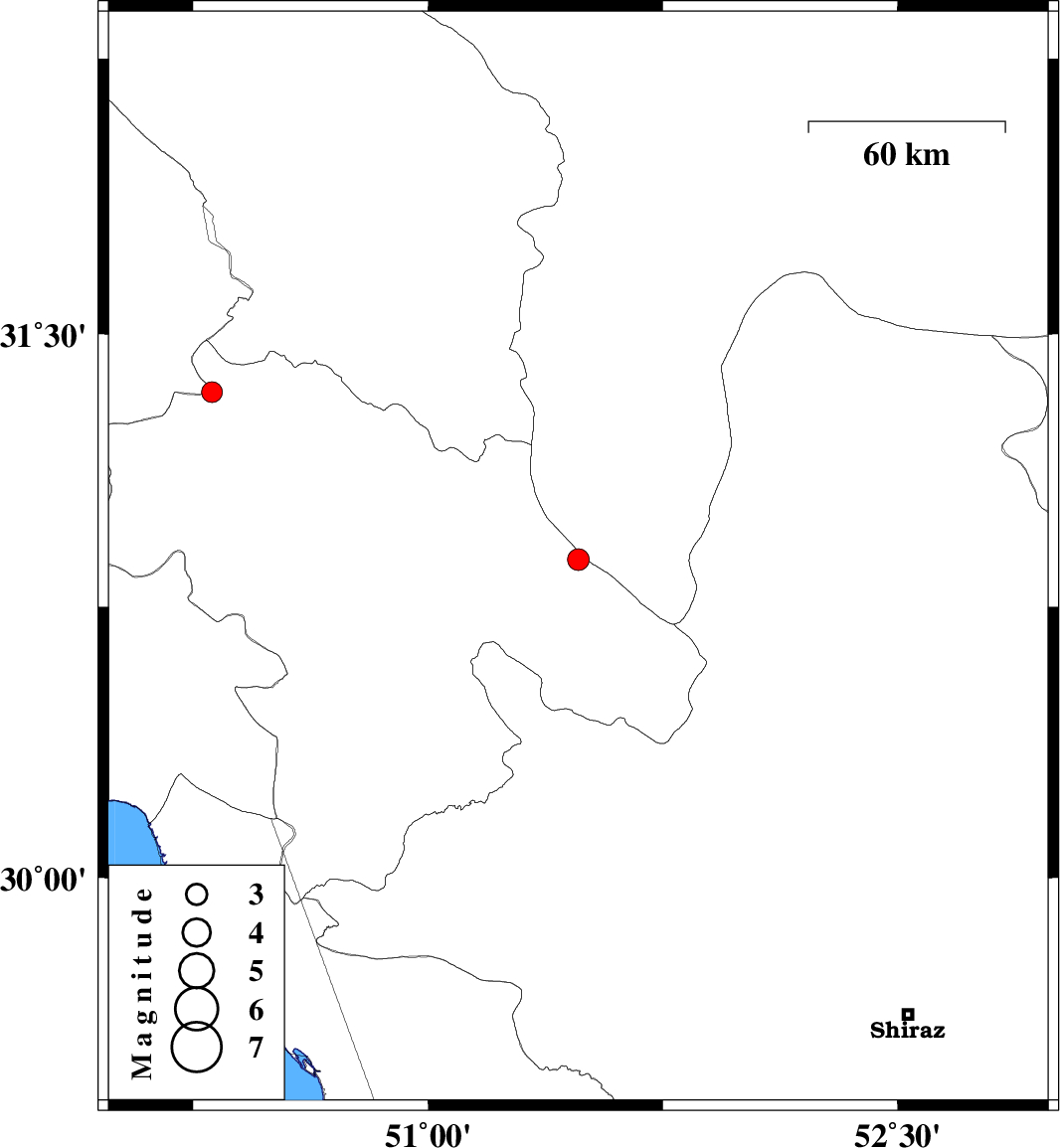 | 2012/12/20 | 18:47:17.7 | 22:17:17.7 | 30.88 | 51.48 | 15 | ML:3.1 | Kohkiluieh va boyerahmad Province, 2 km Sisakht | ||