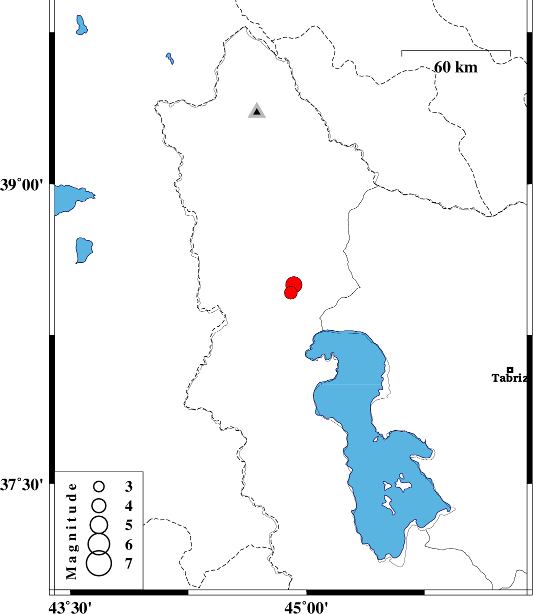 | 2012/12/23 | 07:12:32.6 | 10:42:32.6 | 38.46 | 44.9 | 14 | ML:3.7 | Azarbaijan Gharbi Province, 11 km Khoy | ||