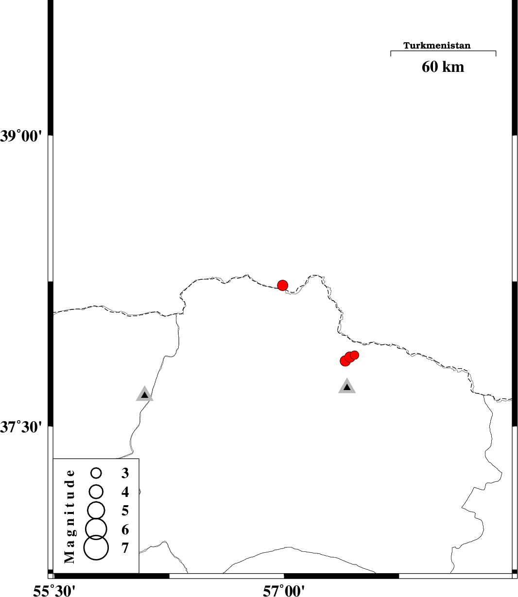 | 2012/12/23 | 19:06:02.0 | 22:36:02.0 | 37.86 | 57.43 | 6 | ML:3.1 | Khorasan(north) Province, 44 km North-East of Bojnurd | ||