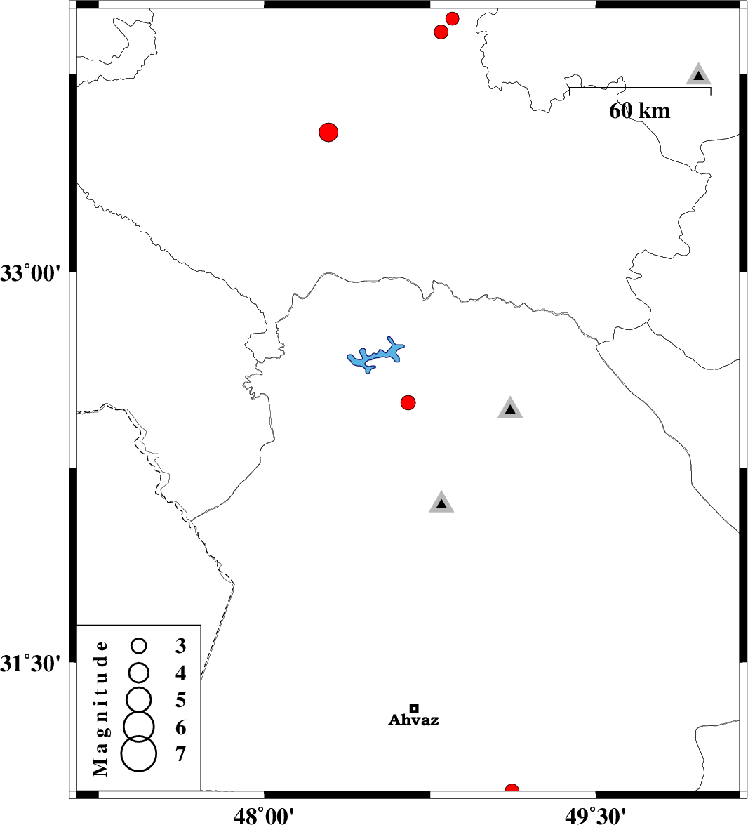 | 2012/12/18 | 13:51:54.0 | 17:21:54.0 | 33.53 | 48.29 | 14 | ML:3.8 | Lorestan Province, 9 km Khorramabad |