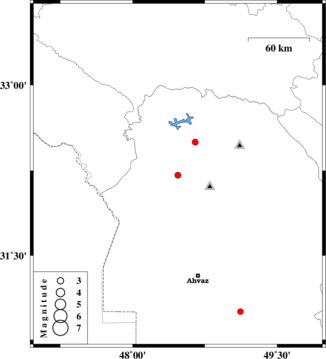 | 2012/12/26 | 07:16:30.1 | 10:46:30.1 | 32.21 | 48.47 | 14 | ML:2.9 | Khoozestan Province, 21 km East of Shush | ||