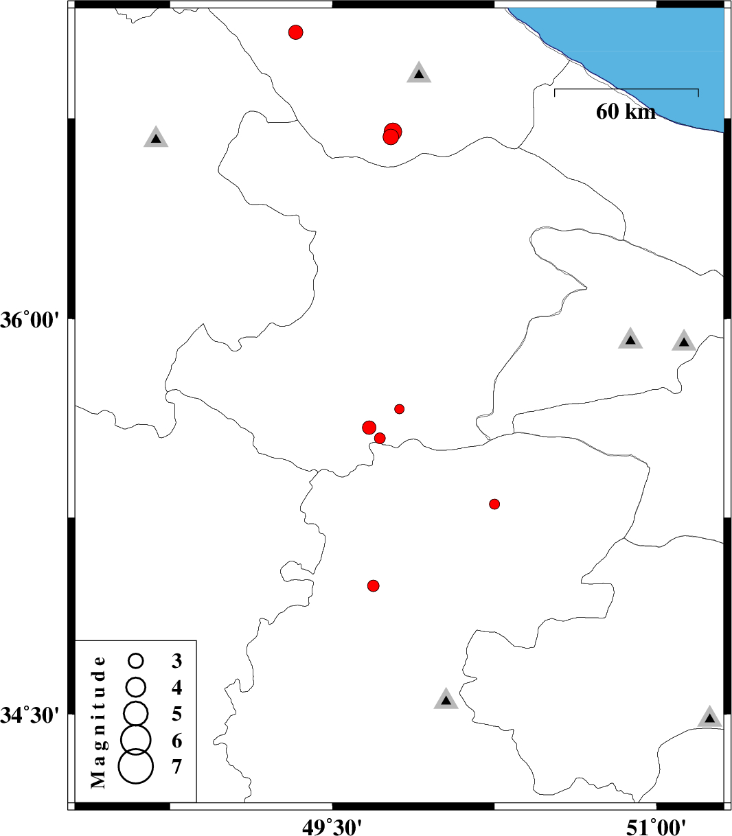 | 2012/12/15 | 07:46:43.5 | 11:16:43.5 | 36.7 | 49.78 | 14 | ML:3.6 | Gilan Province, 35 km South-East of Rudbar | ||
