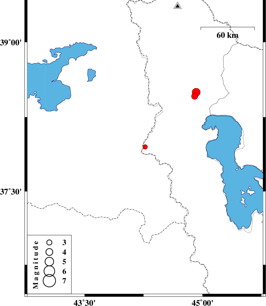 | 2012/12/27 | 22:03:08.5 | 01:33:08.5 | 37.95 | 44.27 | 18 | ML:2.7 | Azarbaijan Gharbi Province, 51 km South-West of Salmas | ||