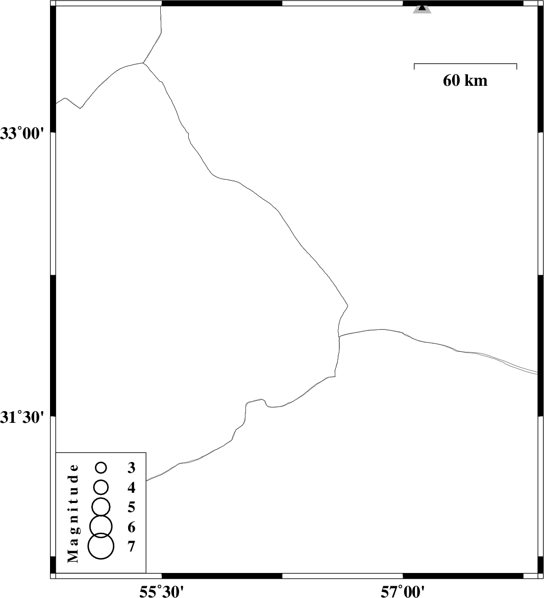 | 2012/12/28 | 19:45:36.4 | 23:15:36.4 | 32.16 | 56.34 | 18 | ML:3.2 | Yazd Province, 109 km North-West of Ravar |