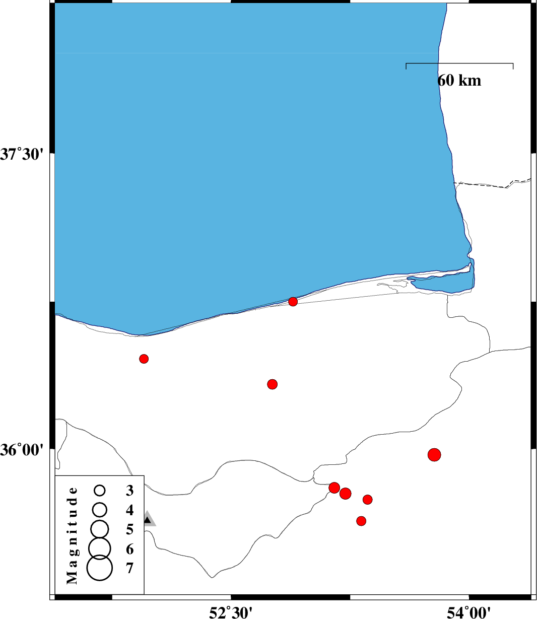| 2012/12/11 | 21:47:42.6 | 01:17:42.6 | 35.97 | 53.78 | 14 | ML:3.7 | Semnan Province, 56 km South-West of Damghan | ||