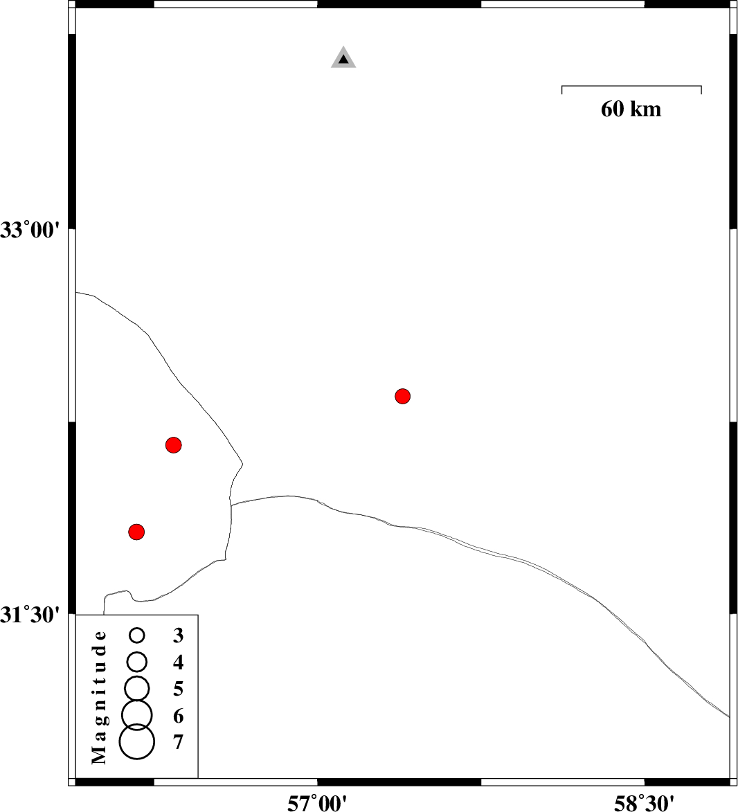 | 2012/12/29 | 14:42:31.5 | 18:12:31.5 | 32.35 | 57.39 | 18 | ML:3.1 | Yazd Province, 133 km North-East of Ravar | ||