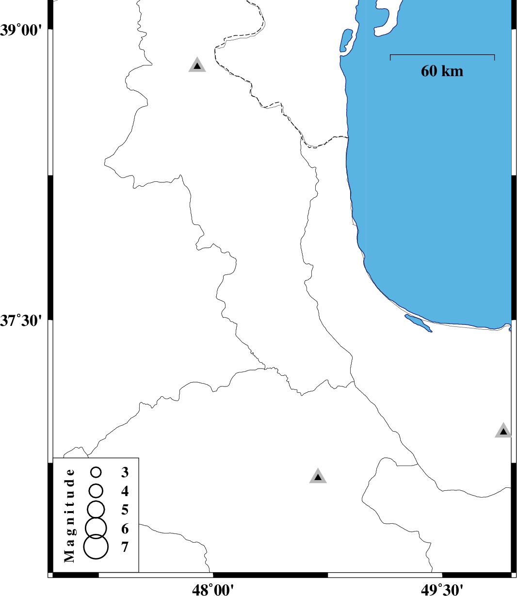 2012/12/30 | 06:41:18.1 | 10:11:18.1 | 37.67 | 48.45 | 14 | ML:3.2 | Ardebil Province, 6 km Givi |