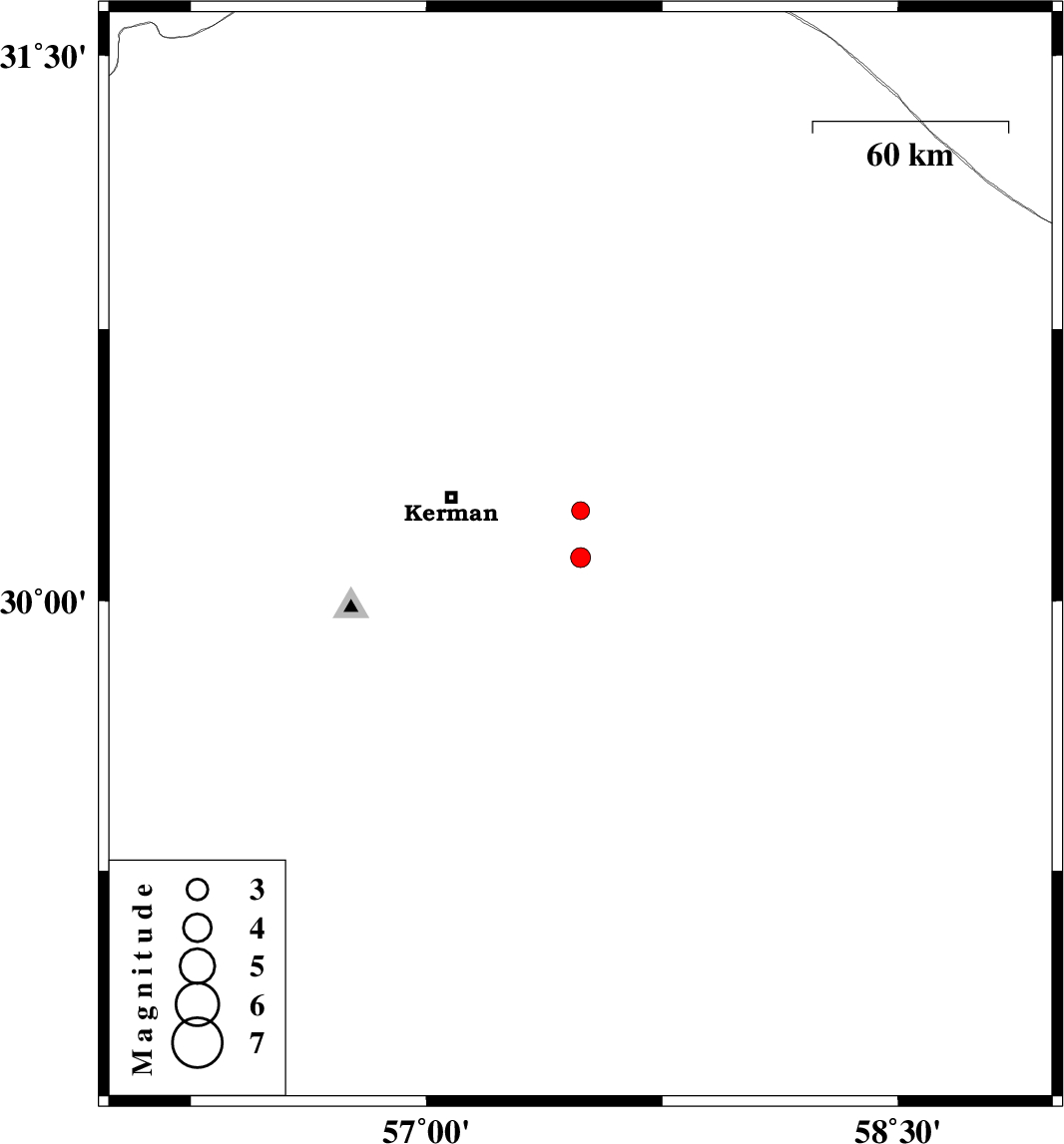 | 2012/12/24 | 15:05:10.1 | 18:35:10.1 | 30.25 | 57.49 | 14 | ML:2.5 | Kerman Province, 40 km East of Kerman |