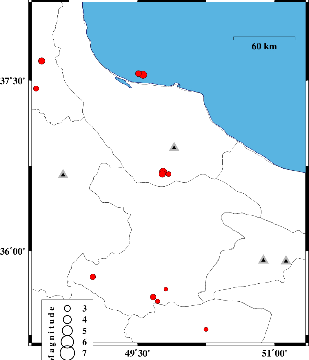 2012/12/11 | 09:47:18.7 | 13:17:18.7 | 37.56 | 49.51 | 14 | ML:2.9 | Caspian Sea, 11 km Bandar-e anzali | ||