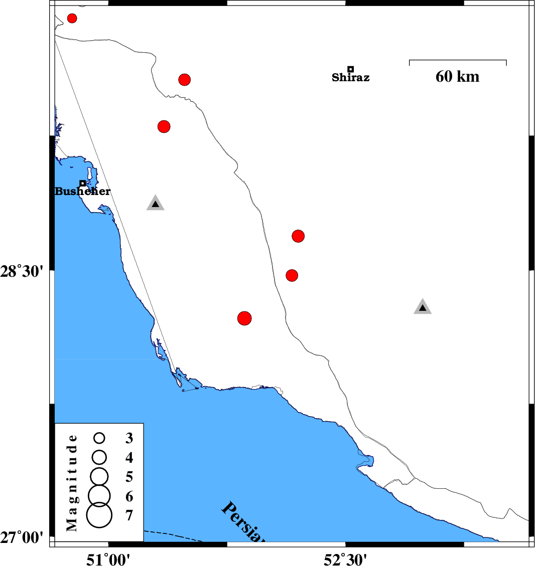 | 2013/01/05 | 12:50:01.2 | 16:20:01.2 | 28.23 | 51.86 | 18 | ML:4 | Bushehr Province, 49 km North-West of Bandar-e kangan | ||