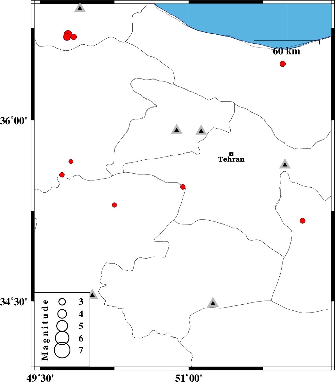 | 2012/12/15 | 07:46:43.5 | 11:16:43.5 | 36.7 | 49.78 | 14 | ML:3.6 | Gilan Province, 35 km South-East of Rudbar | ||