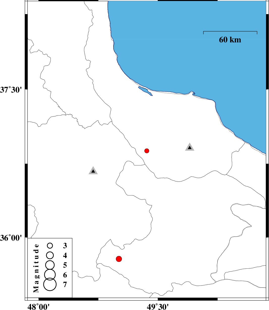 | 2013/01/14 | 01:32:01.7 | 05:02:01.7 | 36.88 | 49.36 | 18 | ML:2.6 | Gilan Province, 9 km Rudbar | ||