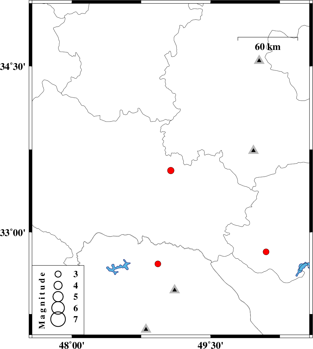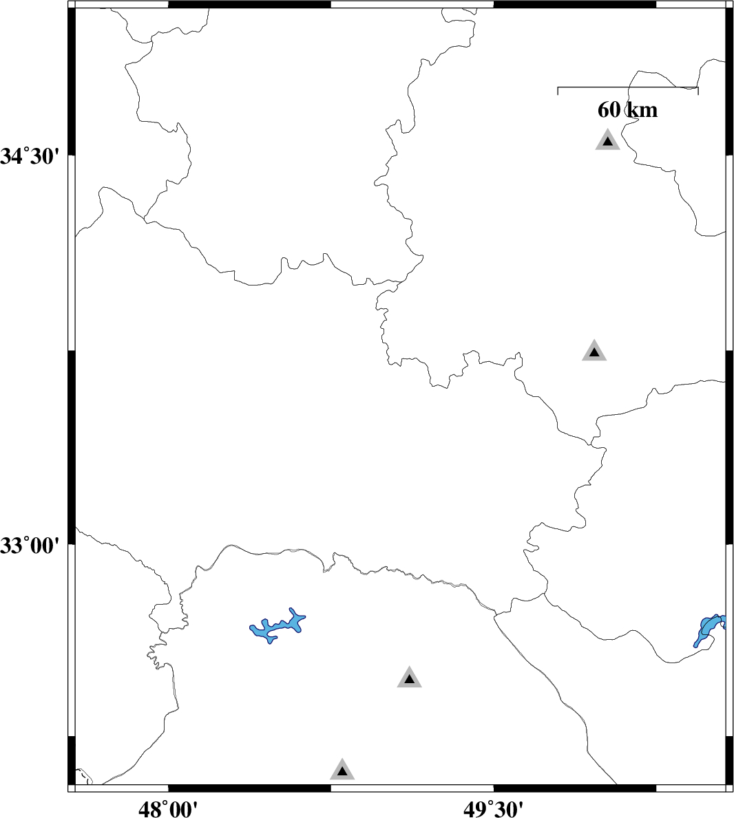 | 2013/01/16 | 15:19:41.8 | 18:49:41.8 | 33.56 | 49.07 | 16 | ML:3.3 | Lorestan Province, 9 km Dorud | ||